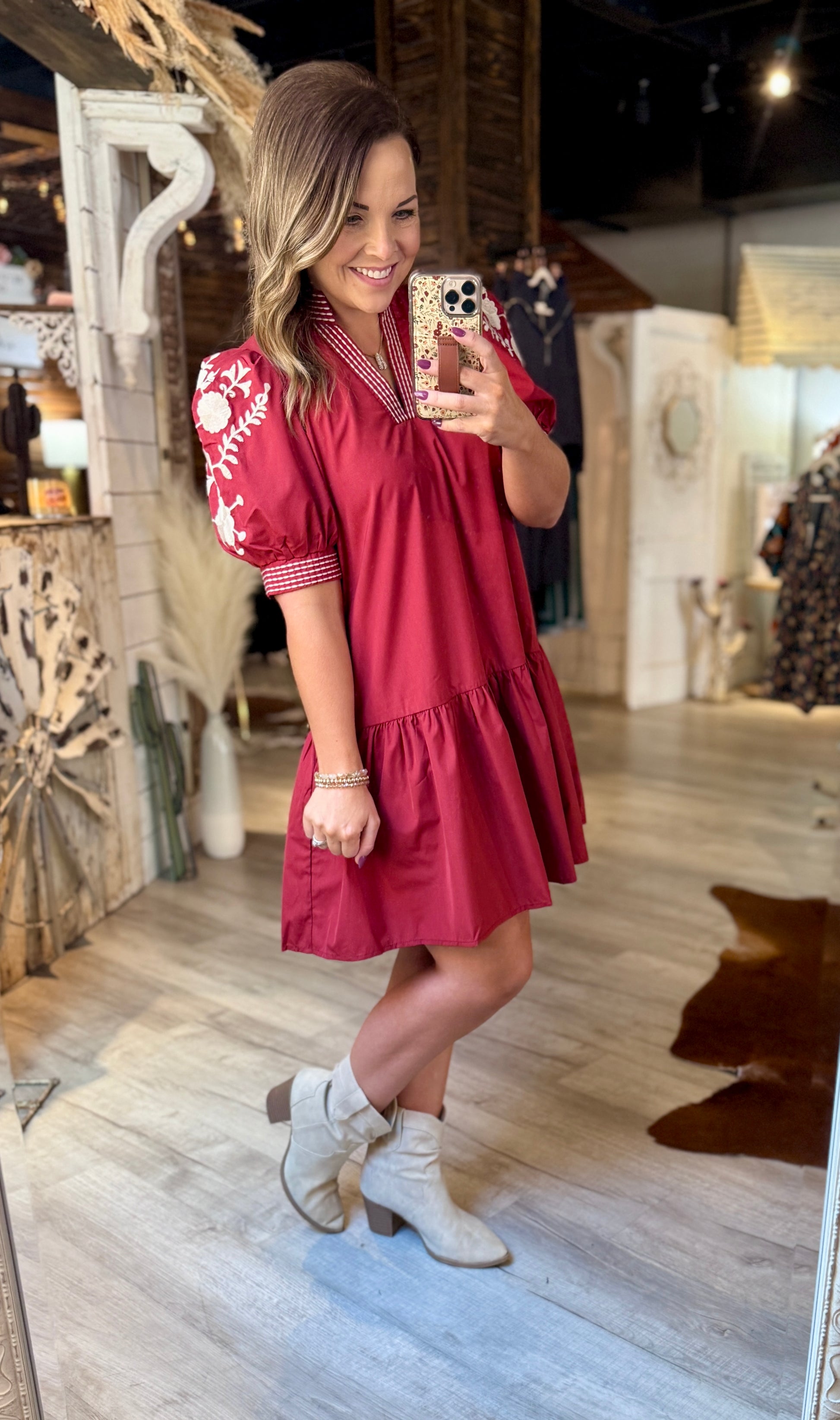 Brick Embroidered Dress