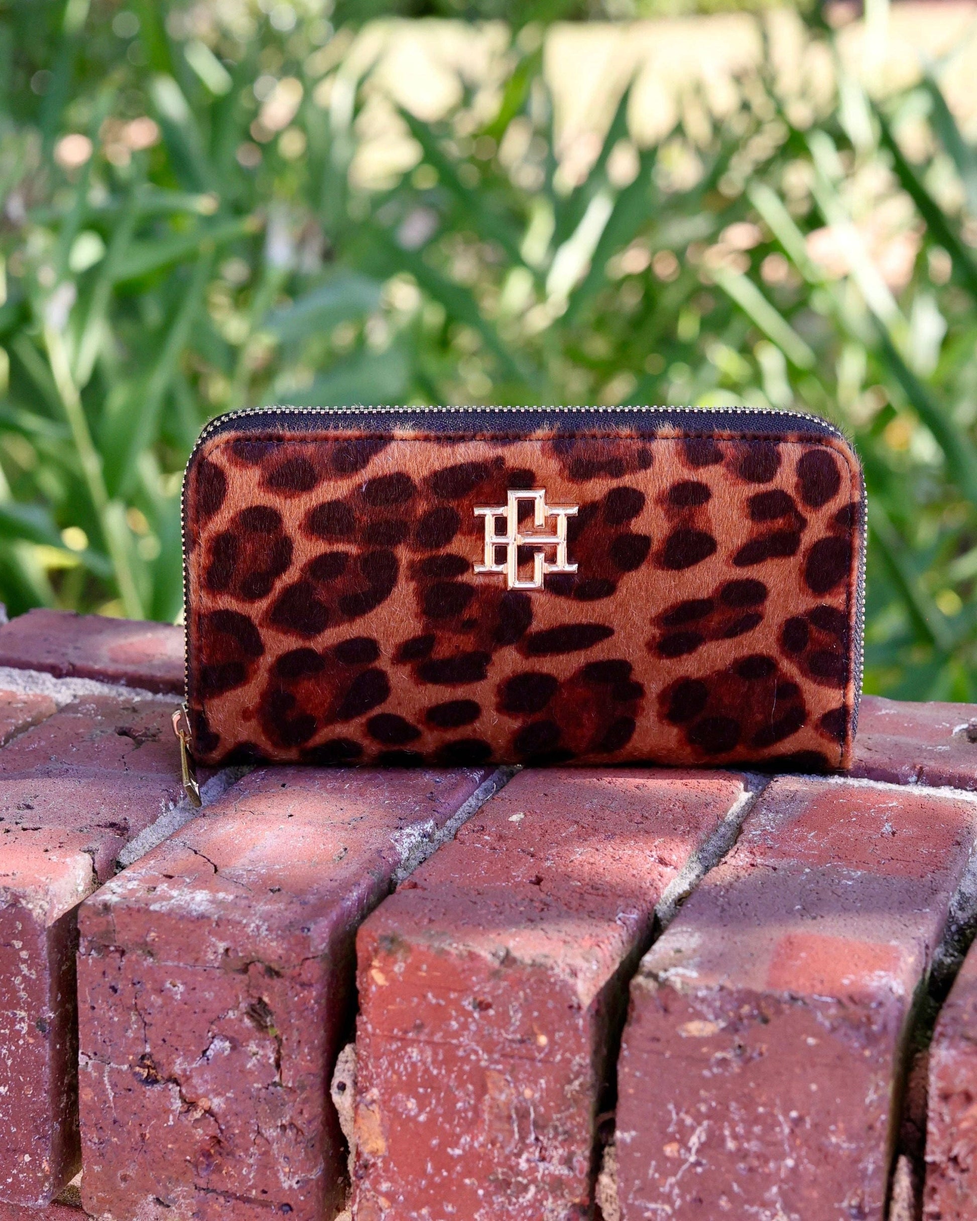 The Penelope Wallet in Spotted Saddle features an elongated zip design with a central zippered coin pouch and two sets of card holders for organized storage. An outside slit pocket offers quick-access space, making it a stylish and practical accessory that holds all your daily essentials effortlessly.